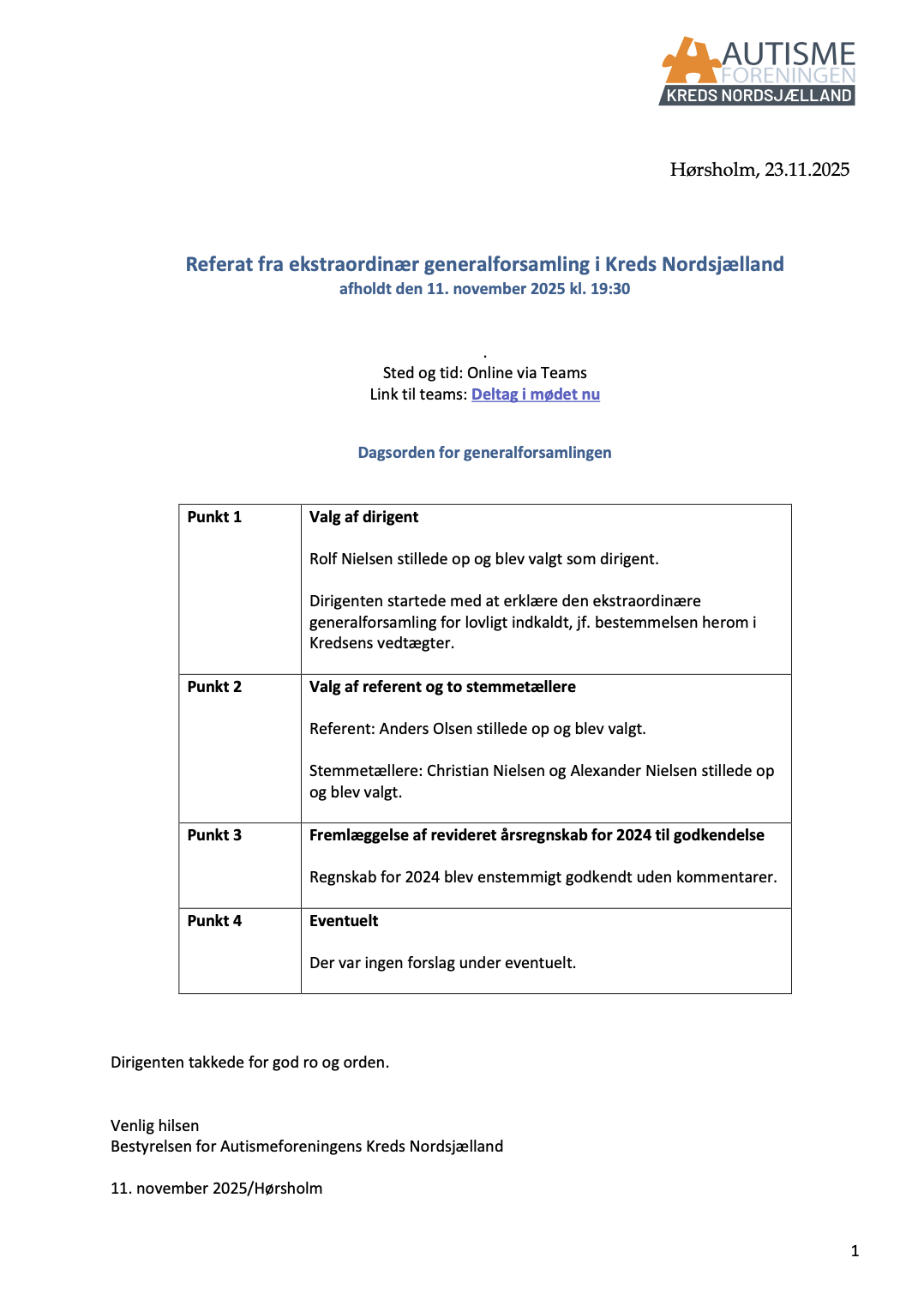 Ekstraordinær generalforsamling d. 23. november 2025